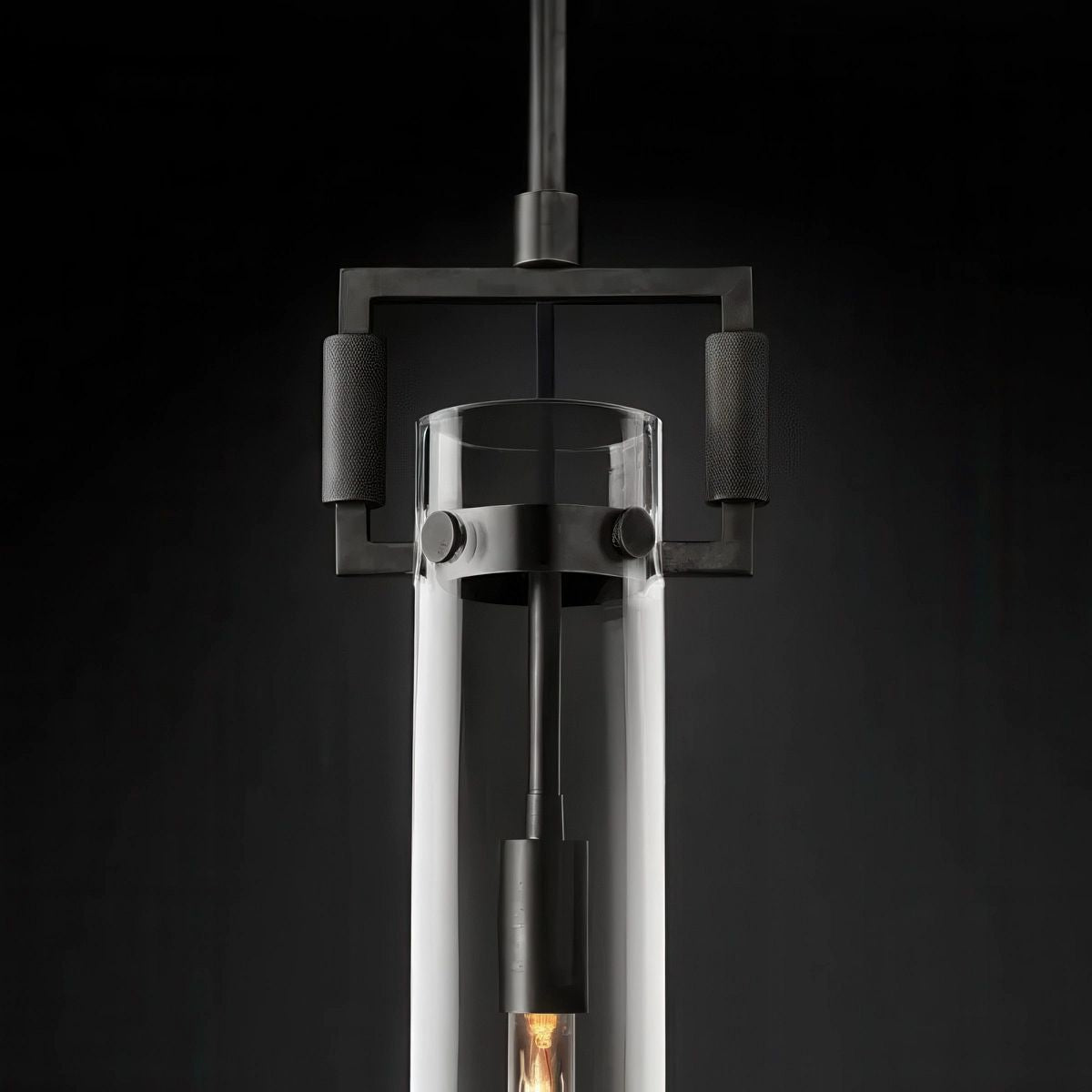 Crafted of solid metal, the geometric yoke reveals its industrial inspiration. In contrast, the clear glass surround is barely there, echoing the form of a shade. An ultra-slim Edison bulb housed within reveals arresting filaments of light.