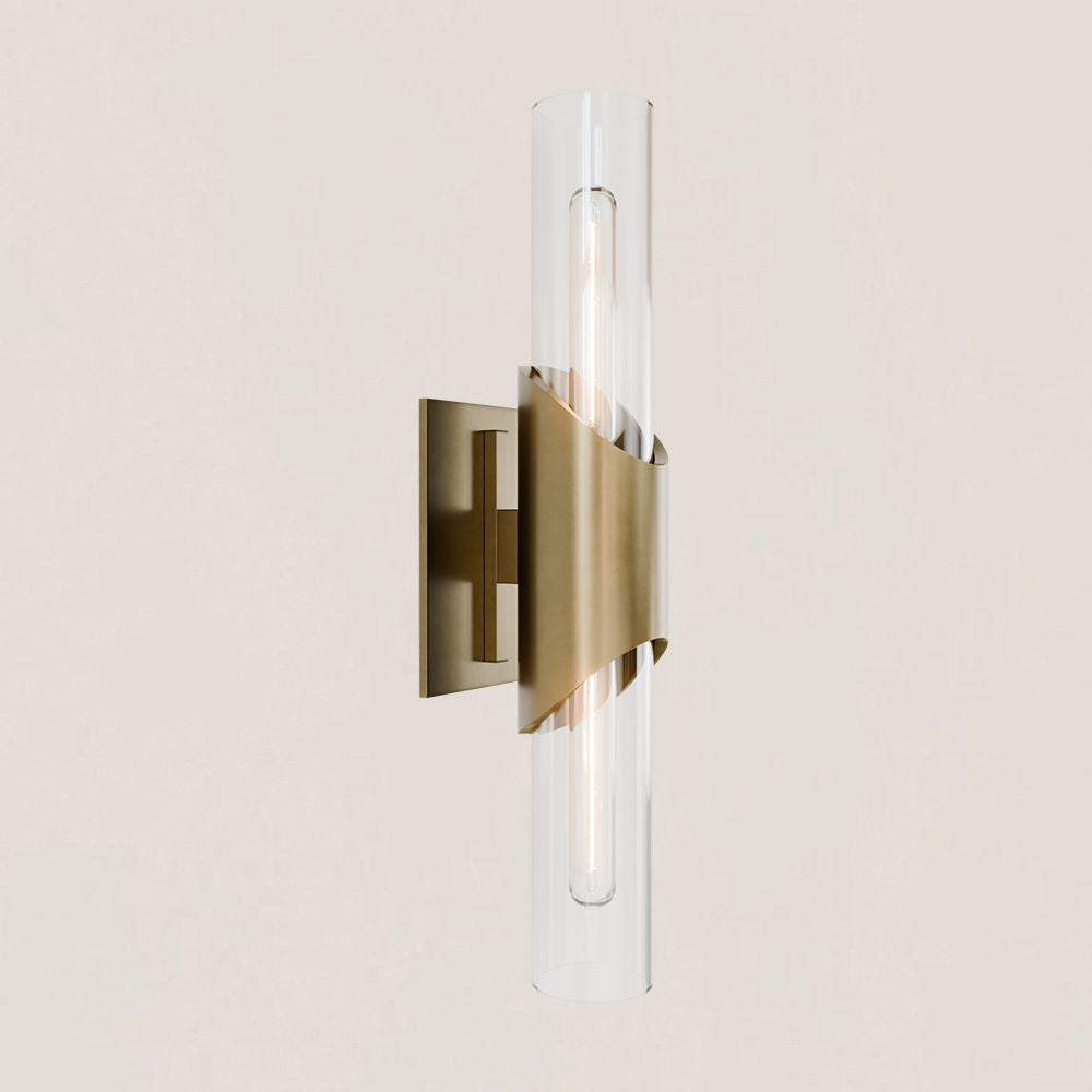 This modern elegance wall sconce blends simplicity with sophistication, featuring a sleek design highlighted by dual transparent glass tubes that house slender LED bulbs, emitting a gentle glow. Perfectly balancing modern minimalism and opulence, this enhances any interior with its clean lines and high-end materials, creating a luminous and elegant atmosphere.