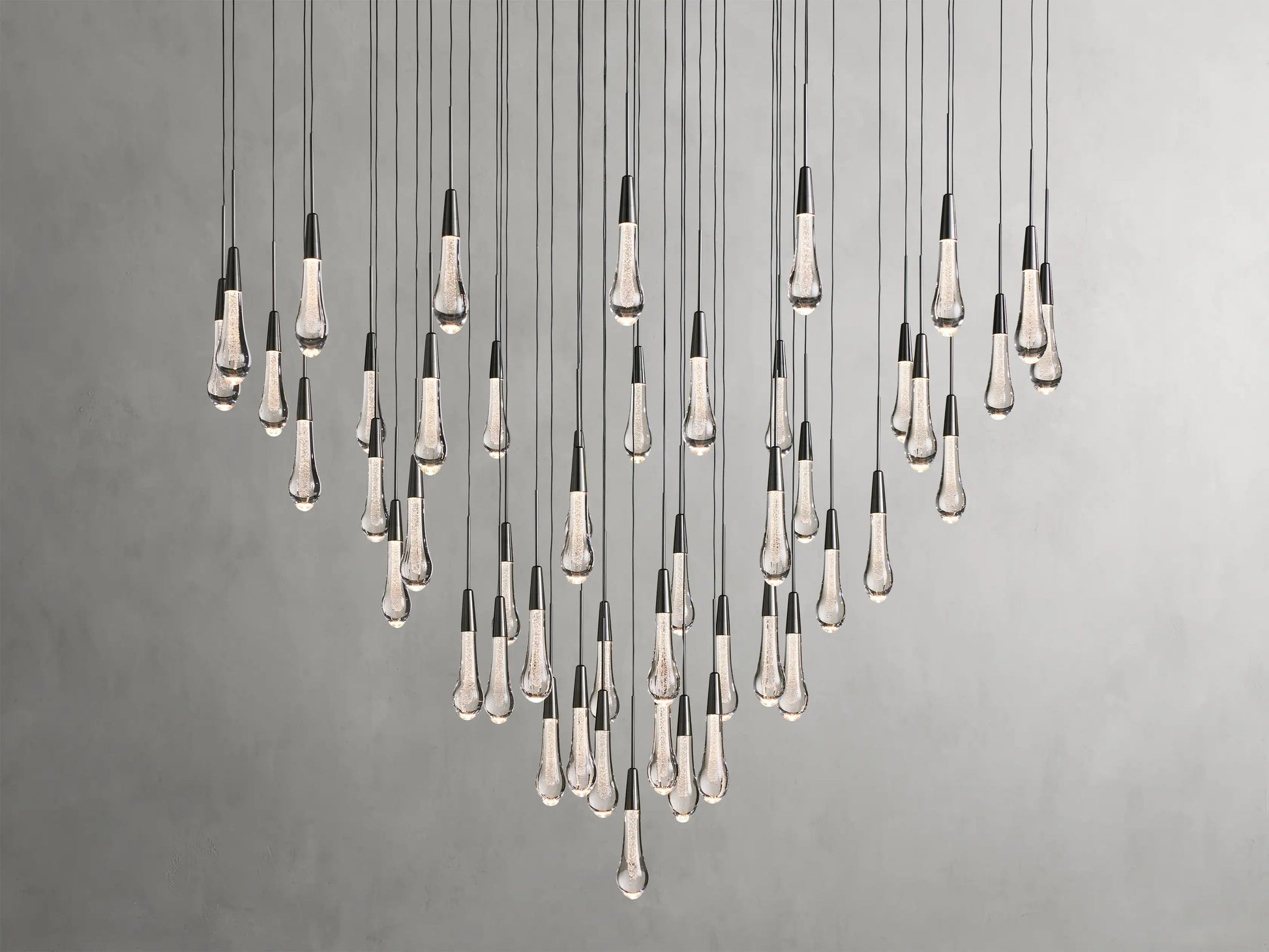 58" chandelier with forty-seven integrated 70-watt LED bulbs (included), LED lifespan of 50,000 hours.